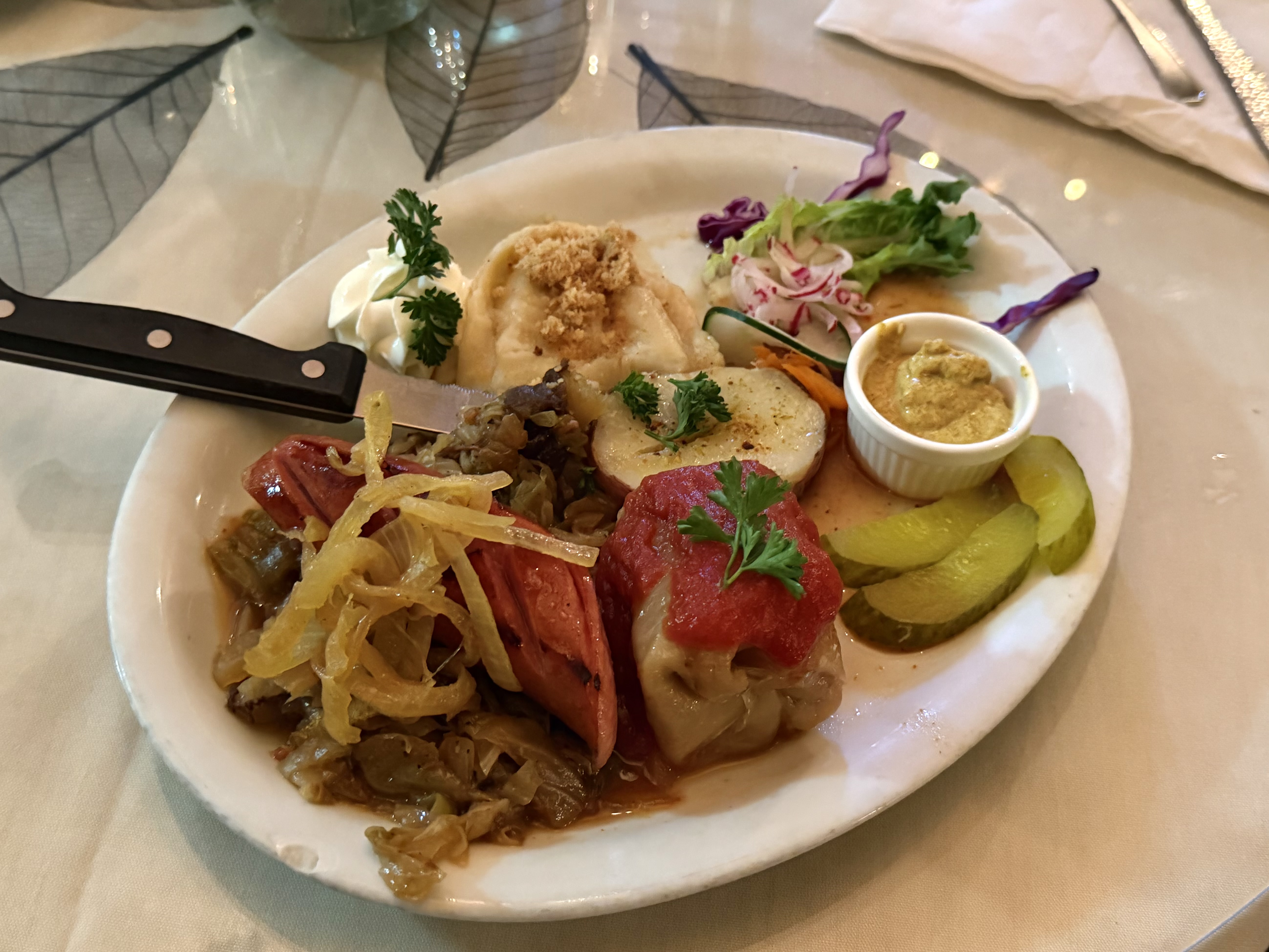 Our server, Michael, warned us Valentine’s Day “cleaned them out” of goulash and paprikash, suggested I go for the “Polish Plate” and my roommate (a vegetarian) the vegetarian plate respectively, making us laugh at least twice.
